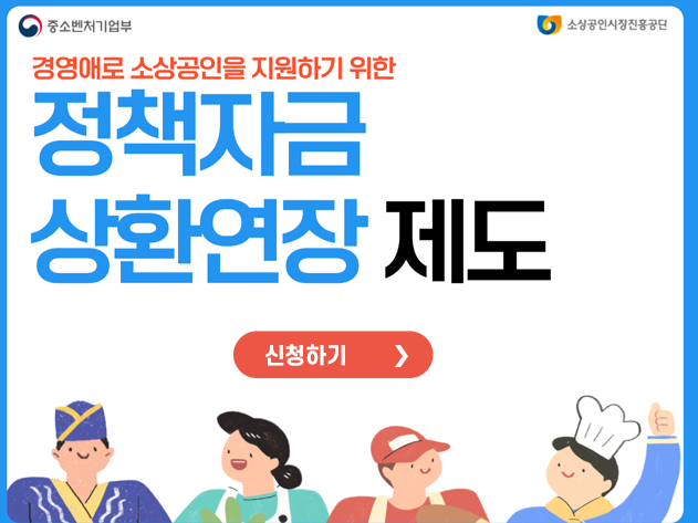 - 소상공인 정책자금 상환연장 제도가 8월 16일부터 시행됩니다.