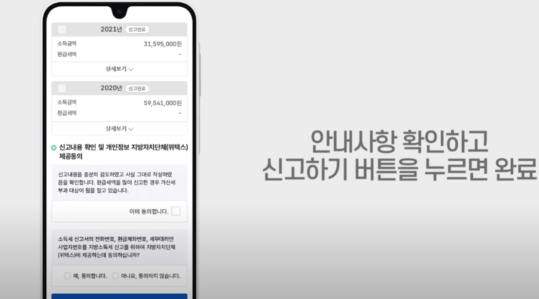 클릭 한 번으로 가능한 국세청 원클릭환급서비스